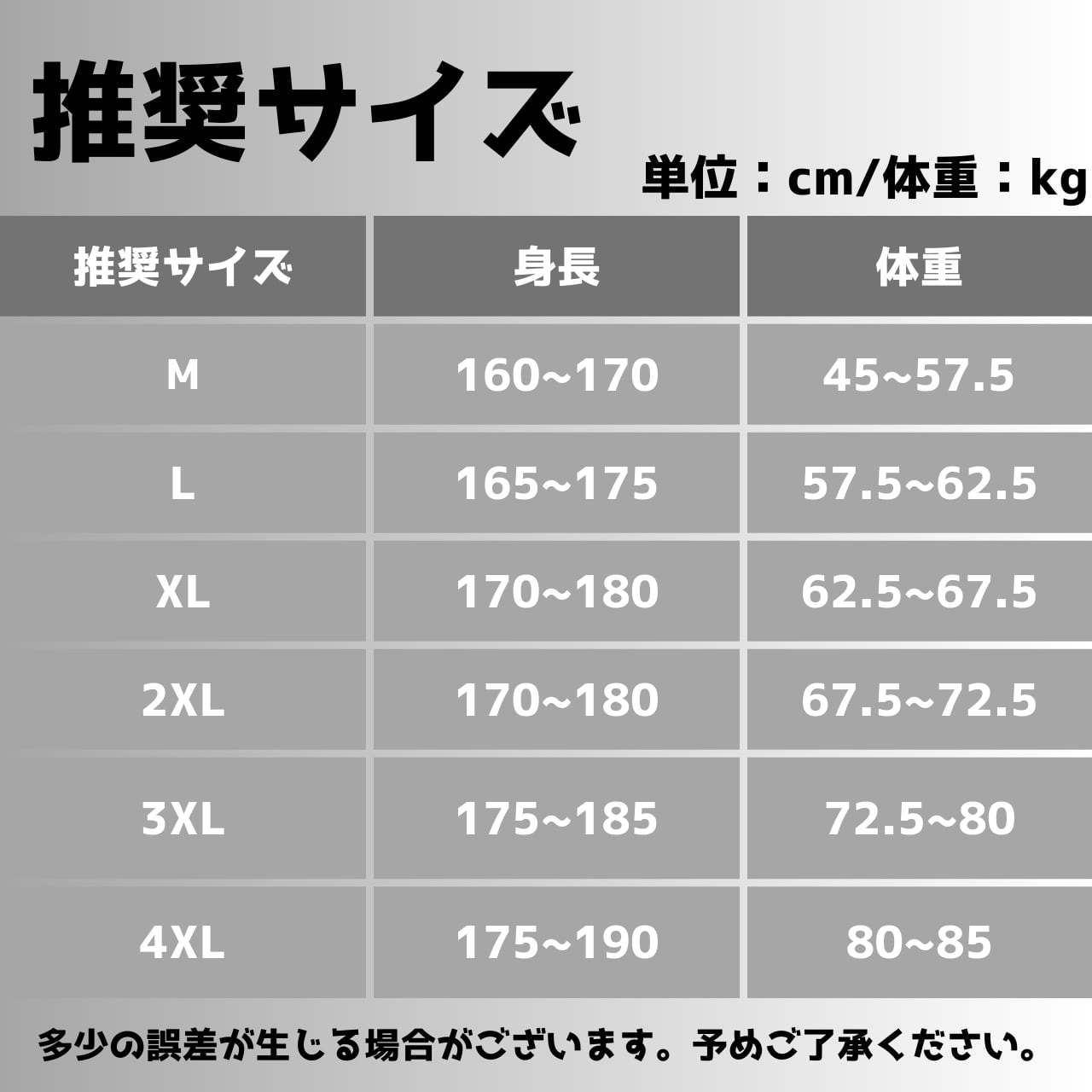 ・サイズ:M、L、XL、2XL、3XL 、4XL