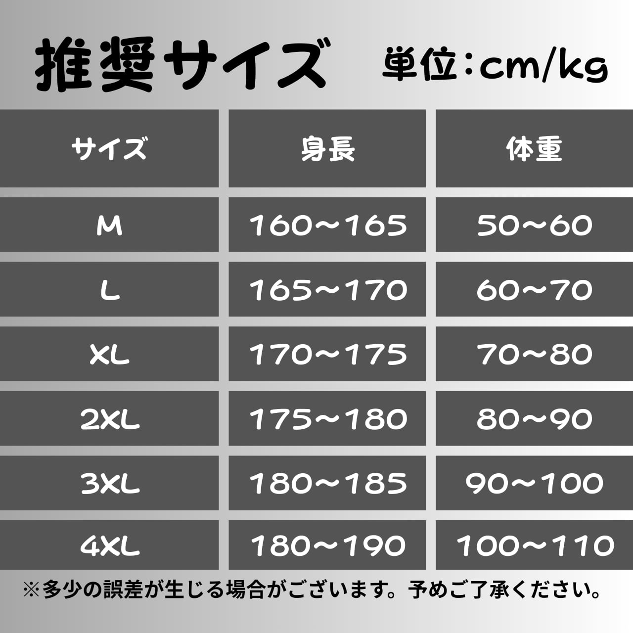 ・サイズ:M、L、XL、2XL、3XL、4XL