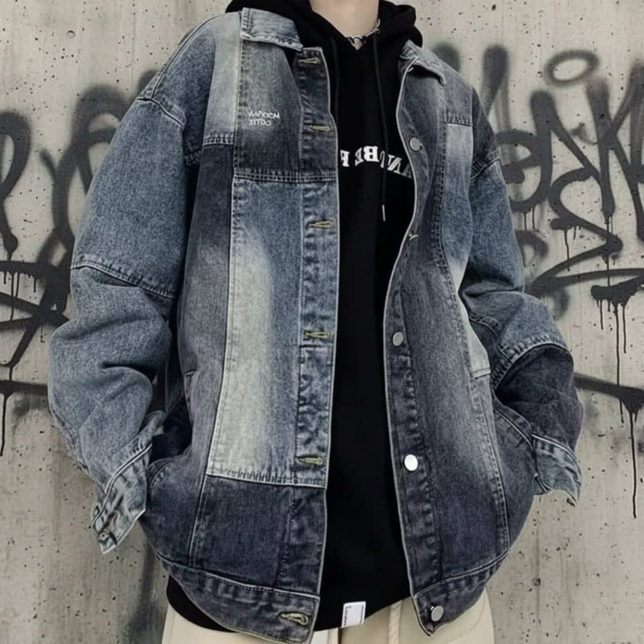 春秋の気候にぴったりなレトロブルーパッチワークデニムジャケットです。独自のパッチワークデザインが特徴で、ゆったりとしたシルエットがリラックスした印象を与えます。男女兼用のスタイリッシュなデザインは、ストリートスタイルを楽しむのに最適です!どんなコーディネートにも合わせやすく、デイリーから特別な日まで幅広く活躍する一着です!