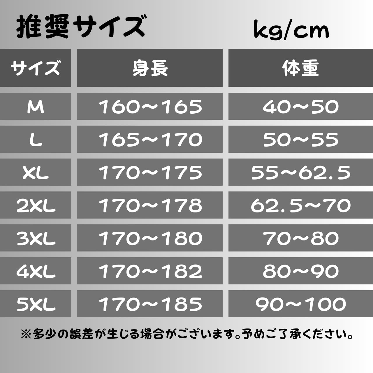 ・サイズ:M、L、XL、2XL、3XL 、4XL