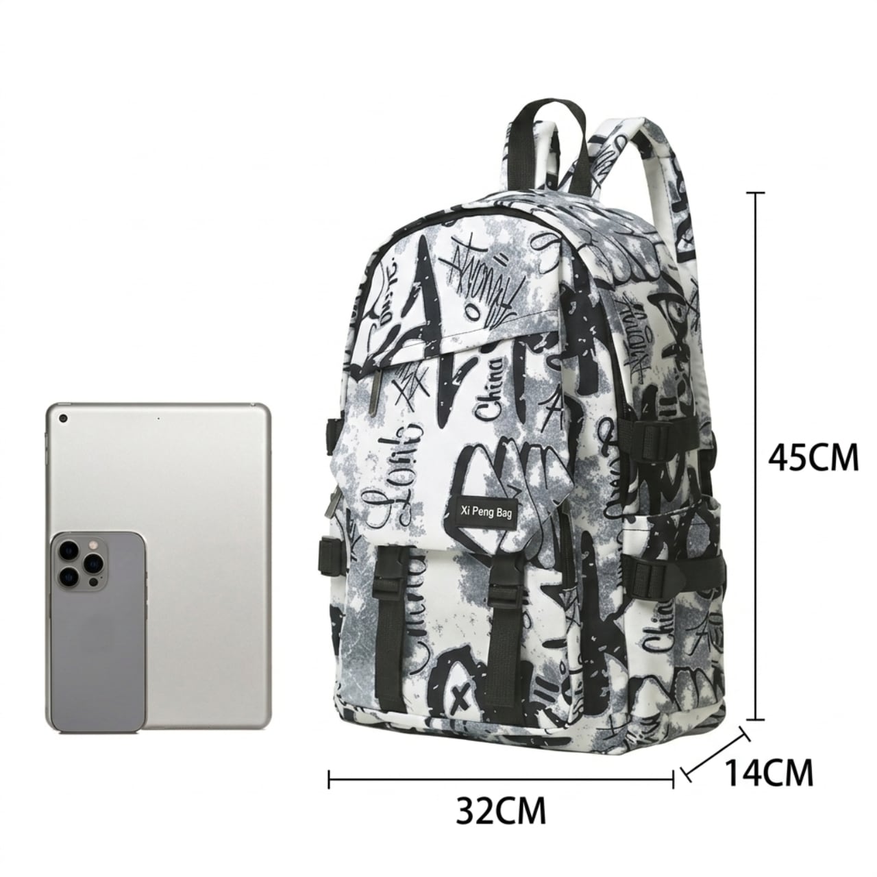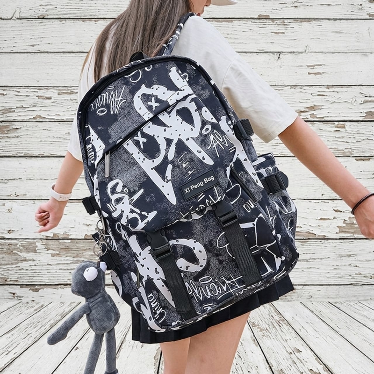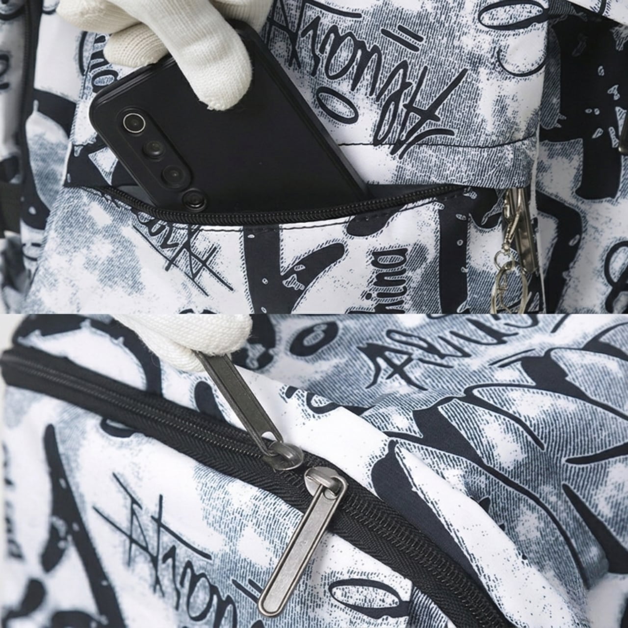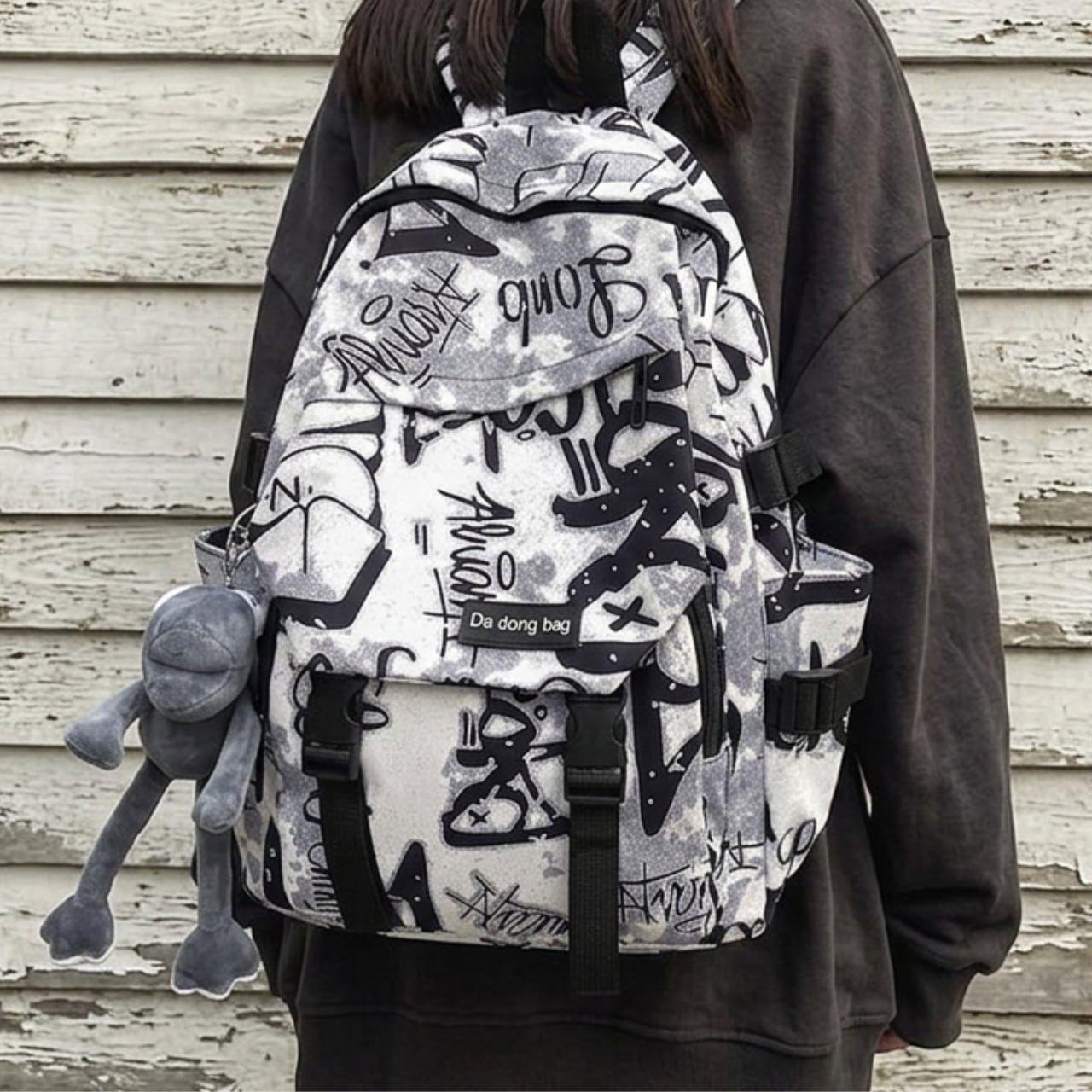 学生生活をより楽しく彩る『落書き』アートバックパックです!ユニークな落書きアートが施されたデザインは、個性を引き立てるだけでなく、使うたびに新たな発見をもたらします。大容量の収納スペースを備えており、教科書やノートパソコン、その他の必需品をしっかりと収納可能です。おしゃれなスタイルが際立つ一品で、どんなシーンにもぴったりです!